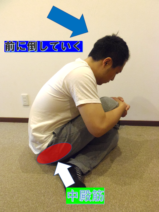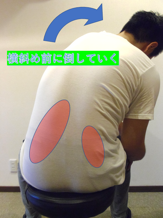 背筋を伸ばしたまま前に身体を倒していきます。