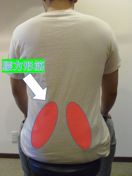 腰の筋肉を意識してください(赤いライン)