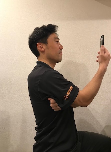 まずは頭を下げずに、姿勢を立てた状態でスマホの画面を見ましょう。