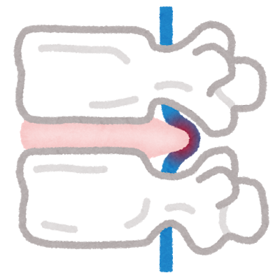 飛び出したヘルニアが神経を圧迫することで様々な症状を引き起こします。加齢による変性、姿勢不良、激しい運動などによる負担が椎間板にかかることで発症します。